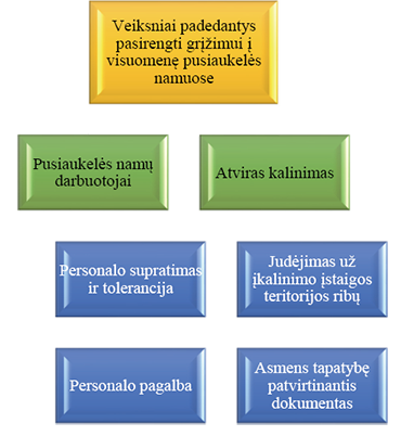 2 pav. Veiksniai, padedantys pasirengti grįžimui į visuomenę pusiaukelės namuose