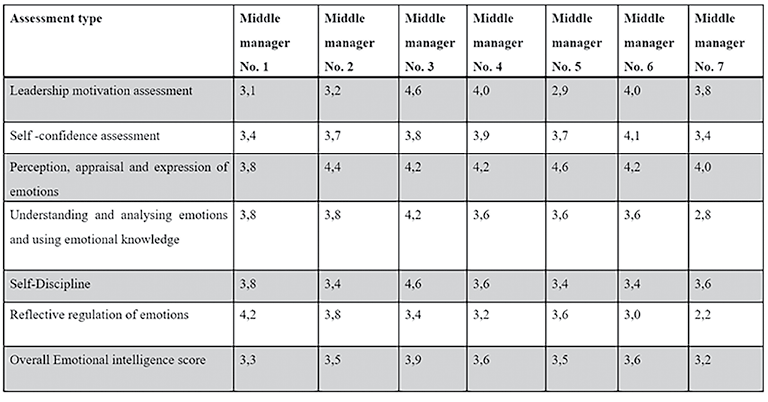 Figure 2 below shows the results of the answers given by middle managers in three individual competency development assessments on their leadership motivation, emotional intelligence, and self-confidence.