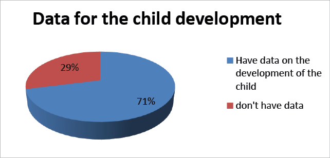 The other point we analyzed during our research was the data on the child’s development, and their structure; of the total simple N = 180, 63.9% of them have data on the development of the child (surveillance protocol), and 26.1% don’t have (Graph 2)