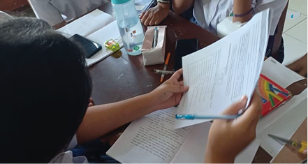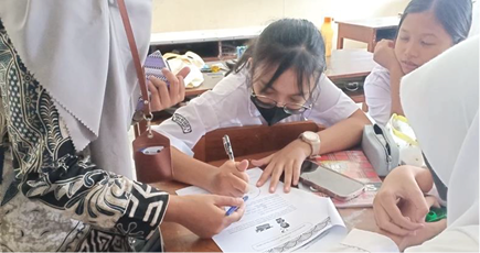 Reflection from cycle 2 includes class and time management, discussion process and problem-solving pattern. Researchers as teachers have provided clarity regarding time and how activities are carried out. That makes the lesson more effective. In discussion process, homogeneous grouping encouraged them to collaborate with peers of similar ability. Realizing that each group member has the same ability, students worked to complete the worksheet without relying on partner. This grouping is effective enough to make each student feel that they have an equal role and opportunity in learning. The success of cycle 2 is also affected by the students’ familiarity with problem-based learning (because cycle 1 also applied problem-based learning).