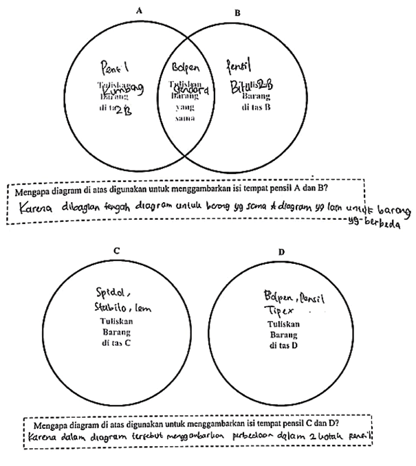 At the end of problem investigation, they were able to find the concept that in random item picking, the existence of intersection decides the probability of item A or item B being picked. They can use the concept to solve the problem of the probability that an item will be taken (Figure 10).