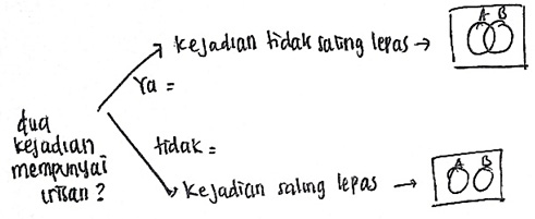When working on the worksheet, students identified the items from two pencil cases. They recorded the results and represented them in a Venn diagram (Figure 8). Some students drew two intersecting sets and some disjoint sets. The difference in their findings became a topic of class discussion. This led to the concept, through a simple flowchart (Figure 9), that when two events do not have intersection, they are two events that cannot occur at the same time, and conversely, when two events have an intersection, they are two events that can occur at the same time.