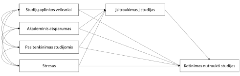 1. Atskleisti studijų aplinkos ir psichologinių veiksnių sąsajas su ketinimu nutraukti studijas.
