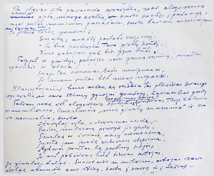 2 pav. Ištrauka iš Mykolaičio-Putino romano Sukilėliai II tomo švarraščio, kuriame cituojama Anusavičiaus poezija (LLTI BRe, l. 133).