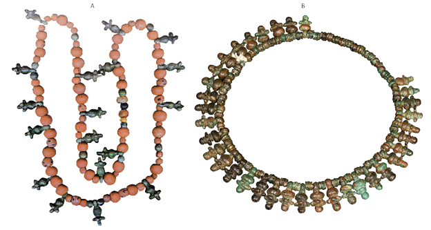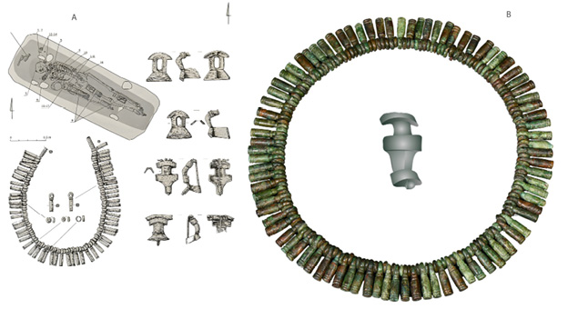 10 pav. A. Krivūlė, plokštinis kapas S. 4, 150–220 AD. B. Dauglaukis, plokštinis kapas 13, 150–220 AD (pagal J. Jaskanis, 2013, E. Jovaiša, 2023).