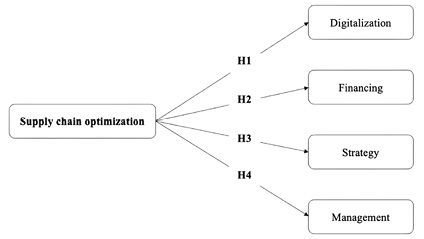 Research on the influence of a company’s strategy on SC improvement highlights several important findings and advances. It is essential that a company’s SC is consistent with the corporate strategy in order to achieve high performance (Kazmane et al., 2017). The choice of a SC strategy is a statistically significant relationship between the company’s objectives and the external environment. Companies can choose to adopt strategies focused either on operational excellence or on customer proximity, depending on the specifications and expectations of the latter (Kazmane et al., 2017). The fourth hypothesis is associated with the statistical role between the company’s strategy and SC optimization. That said, we present the hypothesis in the following form: