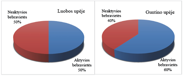 3 pav. Bebraviečių aktyvumas Luobos ir Guntino upėse
