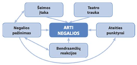 Tema Arti negalios sujungė paauglių, neturinčių negalios, patirtis ir apėmė penkias potemes: Šeimos įtaka, Bendraamžių reakcijos, Negalios pažinimas, Teatro trauka, Ateities punktyrai (3 pav.).