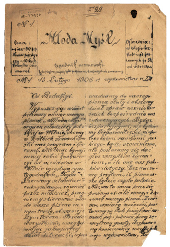8 iliustr. Młoda Myśl. Tygodnik uzcniowski. 1906 r., 13 lutego, no. 1. LMAVB RS F29-816.