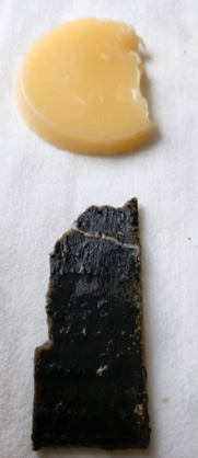 Labai svarbus buvo vaško sudėties tyrimas, kadangi vaškas – labiausiai pažeista vaškinių lentelių dalis. Vaškas šiose lentelėse dažniausiai yra naudojamas su priemaišomis, suteikiančiomis jam papildomų savybių, tačiau priemaišos dažniausiai ir lemia vaško greitesnį irimą47. Tyrimo metu paaiškėjo, kad tiriamų lentelių vašką sudaro tik natūralus bičių vaškas, suodžiai (kurie suteikia vaškui tamsią spalvą) ir nedidelis kiekis raudonos spalvos pavienių dalelių48.
