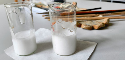 10 CATHER, S.; HOWARD, H. The Use of Wax and Wax-resin Preservatives on English Mediaeval Wall Paintings: Rationale and Consequences. Studies in Conservation, 1986, vol. 31 (sup. 1), p. 48–53; PIRES, C. R.; CARLYLE, L.; SEYMOUR, K.; POMBO CARDOSO, I.; FRANÇA DE SÁ, S. An Investigation into the Suitability and Stability of a New Pigmented Wax-Resin Formulation for Infilling and Reintegration of Losses in Paintings. Journal of the American Institute for Conservation, 2023, vol. 63 (3), p. 168–189; ir kt.