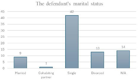 The analysed media content gives minimal attention to the personal characteristics of the perpetrator, such as marital status. While this aspect is frequently explored in academic literature, loneliness and a compulsion to forcefully achieve desired intimacy are often highlighted as key explanations for sexual offences. The analysis of criminal convictions reveals that a significant proportion of defendants are either single or divorced. Such aspects of the perpetrator’s personal life, including marital status, may hold relevance to understanding the nature of the offence and the underlying factors contributing to their actions. (Table 2).