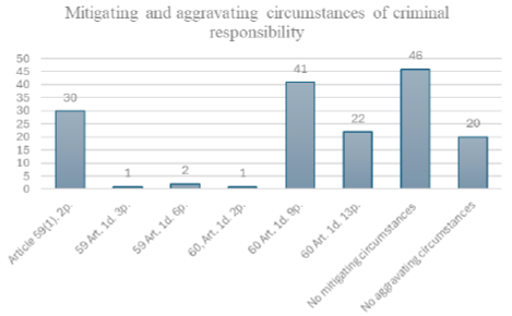 The second most frequent aggravating factor was repeat offences under Article 60(1)(13) of the Lithuanian Criminal Code. As previously noted, prior convictions significantly influence both judicial proceedings and media narratives, shaping perceptions of offenders. (Table 4).