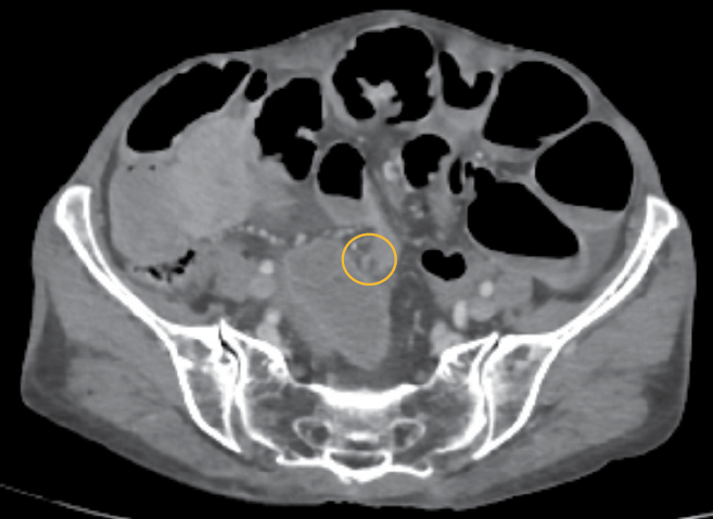 Figure 2. CECT Abdomen & Pelvis showing transition point at the level of distal ileum