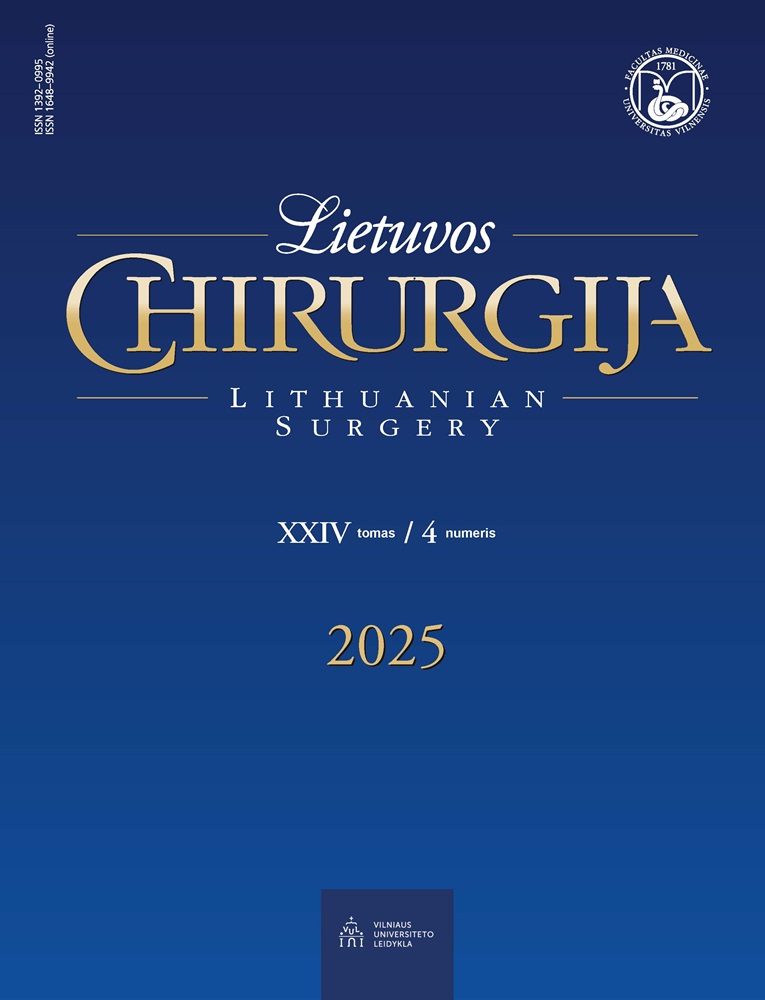 Lietuvos chirurgija (Lithuanian Surgery) is a peer-reviewed diamond open access journal of the Association of Lithuanian Surgeons, the Lithuanian Association for Wound Care, the Lithuanian Association for Ambulatory Surgery, the Lithuanian Society of Endoscopists, the Lithuanian Society of Cardiothoracic Surgeons, the Lithuanian Society of Coloproctologists, the Lithuanian Society of Vascular Surgeons, the Lithuanian Society for Minimal Invasive Surgery, the Lithuanian Society of Neurosurgeons, the Lithuanian Society of Oncologists, the Lithuanian Society of Pathologists, the Lithuanian Society for Hand Surgery and Hand Rehabilitation, the Lithuanian Society of Traumatologists and Orthopedic Surgeons, the Lithuanian Society of Urologists, the Lithuanian Society of Paediatric Surgery, the Lithuanian Society of Maxillofacial Surgeons, the Lithuanian Society of Vertebrologists, Vilnius Surgical Society, Kaunas Region Surgical Society, Klaipėda Region Surgical Society, Šiauliai Region Surgical Society, Panevėžys Region Surgical Society.