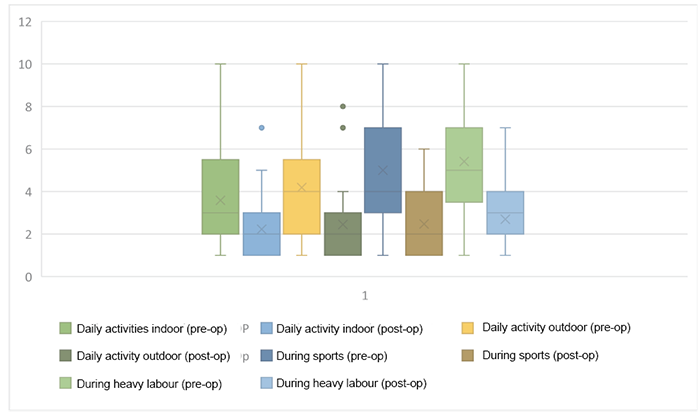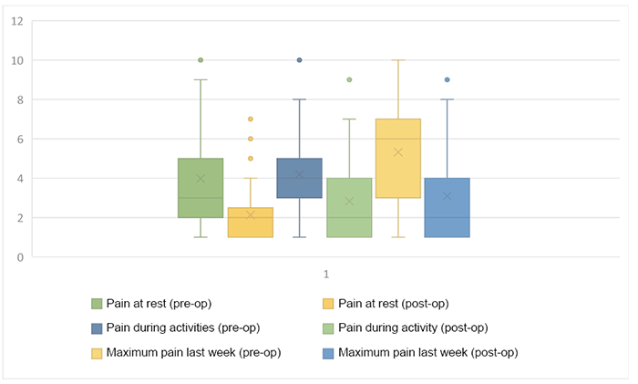 Figure 1. EuraHS-QoL pain scores pre- and post- mesh hernioplasty