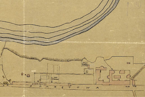 Zakreto gatvės situacinis planas, astronomijos observatorijos kompleksas ir A. J. Čartoriskio kolegija, XX a. ketvirtas dešimtmetis, in: Vilniaus universiteto bibliotekos Rankraščių skyrius, f. 97-71/1. (Planas straipsnio autorių yra koreguotas, pateikiamas plano fragmentas.)