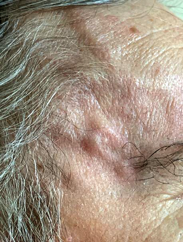 The temporal arteries were very rigid, with skin redness (Fig. 2) and painfulness, and therefore it was difficult to perform an ultrasound examination.
