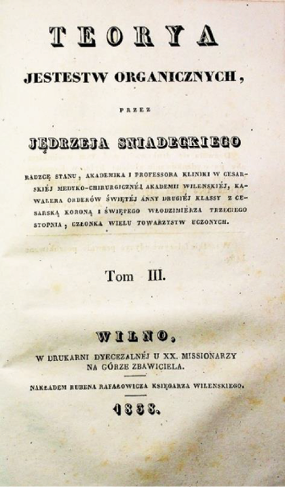 A. Sniadeckio „Organinių būtybių teorijos“ tomas ir skyrius |