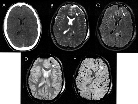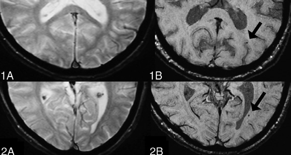 CMBs appear as small (2–10 mm in diameter), round or ovoid hypointense foci which exhibit blooming artifacts, thus making them more conspicuous on MRI sequences that are sensitive to susceptibility effects.