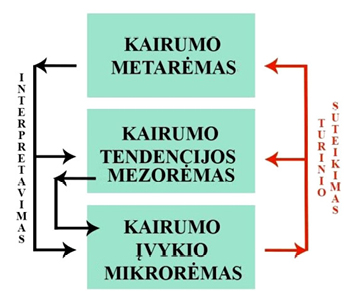 Apibendrindami kairumo metarėmų modelį, aptinkamą mūsų nagrinėjamoje medžiagoje, galime schematizuoti taip (1 pav.).