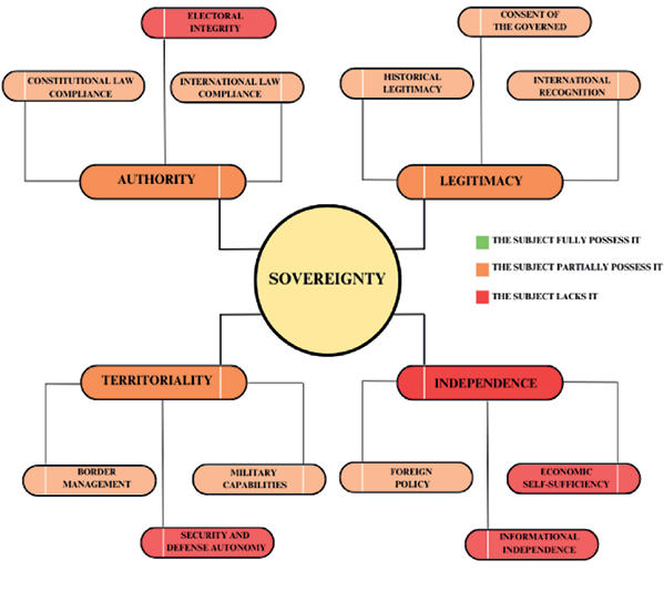 The current paper seeks to address this critical issue by developing a systematic framework for categorising states based on their sovereignty status. At the heart of our analysis lies the distinction between sovereign states and satellite (to be more precise – vassal) states, – a distinction that has significant implications for global security, stability, and the balance of power.6 While sovereign states exercise full autonomy and control over their affairs, satellite states often find themselves in a subordinate position, heavily influenced or even dominated by external powers. To develop our framework, we identify key indicators and criteria that constitute a modern sovereign state. We begin by discussing the definition of the modern conception of sovereignty: definition and key features are provided relying on such authors as E. N. Kurtulus and F. A. Vali. The analysis is followed by developing a model (for more details on the model, see Annex 1 at the end of the paper) that breaks down the concept of sovereignty into four crucial elements: authority, legitimacy, independence, and territoriality. This framework provides a structured assessment of the level of sovereignty in a state and serves as the basis for our analysis. Thus, the crucial task (which is also a key novelty and added value) of this paper is to build a model that allows to assess the level of autonomy and sovereignty in the modern world and test this model on a specific, very sensitive for the regional and global security case. This will first help to answer a question whether the level of countries’ possible dependency can be objectively measured at all. Secondly, while discussing the case of Belarus, it should become clear what problems arise in the practical application of the model.