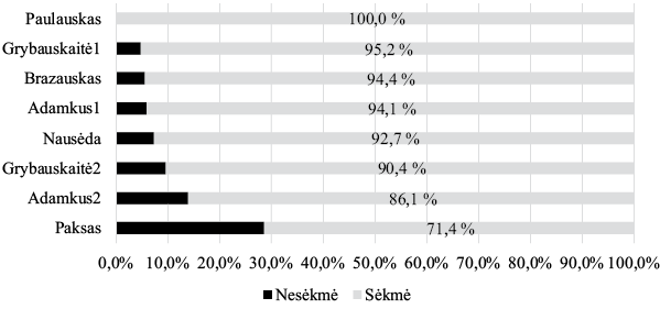 Atitinkamai surinkome duomenis apie tai, ar šie dekretai buvo priimti: net 311 jų iš 337 Seimas pritarė (92,3 proc.). Jeigu Seimas pritarė, bet kandidatas vėliau visgi atsisakė eiti pareigas, tai koduojame kaip priimtą dekretą. Tačiau jeigu jau pateikus dekretą paskui savo iniciatyva arba dėl Seimo pateiktų argumentų (pavyzdžiui, komitetas pasiūlo palikti eiti esamas pareigas) prezidentas dekretą atsiima, tokius atvejus kodavome kaip nesėkmes. Kiekybinė analizė yra pildoma autoriaus atliktų pusiau struktūruotų interviu su aukštas pareigas ėjusiais politikais: S. Skverneliu (ministras pirmininkas 2016–2020 m.), G. Kirkilu (ministras pirmininkas 2006–2008 m.), G. Nausėda (prezidentas nuo 2019 m.) ir M. Linge (prezidentės D. Grybauskaitės patarėjas vidaus politikos klausimais 2009–2019 m.), medžiaga. Interviu buvo atliekami 2023 m.