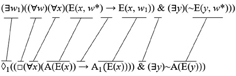 which conveys the idea that it could have been that, necessarily, something is actual. As we can see from this formulation, it is clear that ‘actual’ is bound with ‘it could have been that’, just like intended. Thus, at least for the sentences in question, the problem appears to be resolved: even complex expressions framed in terms of possible worlds can be successfully translated into modal language.
