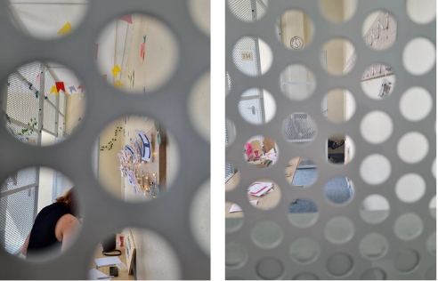 The transformation of the classroom as an urbanized place and the affective dimension of being and interacting with others is thus essential for learning with the milieu. This is also clearly visible in the ninth-grade pupils of Vilnius Sostinės Gymnasium, where the phenomenon of visuality was chosen and inquired. The principle of inquiring about this particular phenomenon is similar to that of the school described above, i.e., the pupils explore the phenomenon in smaller groups. However, due to the phenomenon’s complex nature, each group chooses to explore a different aspect of the visuality. One group of pupils explores visuality as a possible tension between being visible and invisible and decides to create an ‘Escape Room’ in the school corridor (where there had been hardly any movement of children previously), thus leaving the classroom space. The process of creating an ‘Escape Room’ is dynamic: the pupils move around a lot in a corridor space that was previously irrelevant to them; they consider each element of the ‘Escape Room’, consult with each other, and find creative solutions to make it happen. The creation process becomes, at certain moments, a literal opportunity for the students to become invisible. Thus, by leaving the regular classroom space (but not wholly disconnecting from it, as the ‘Escape Room’ was created next to the classroom, and the pupils keep returning to the classroom during the process) and making the ‘Escape Room’ in the corridor, they are also learning with the milieu where they can experience a relation with being visible and invisible.