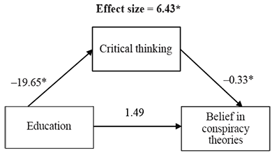 From Figure 1, it can be observed that critical thinking significantly mediates the relationship between education and belief in conspiracy theories.