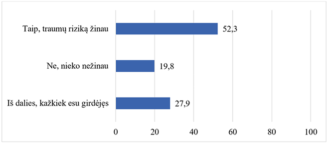 4 pav. Respondentų žinios apie traumų riziką sergant cukriniu diabetu (proc.)