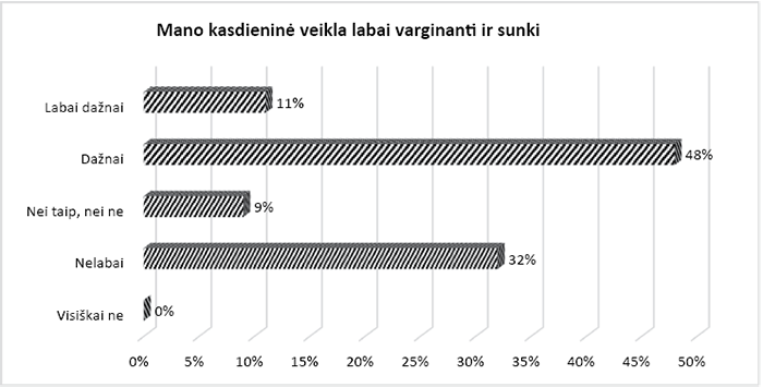 7 pav. Respondentų nuomonių pasiskirstymas apie varginančią ir sunkią kasdieninę veiklą