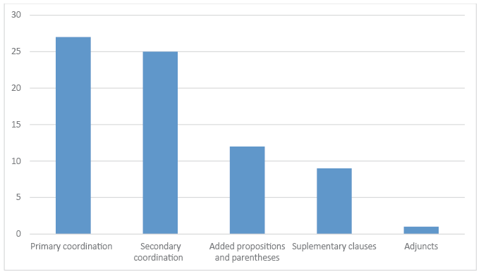Graph 1: Degree of coordination for all types of Slovenian multiclause sentences