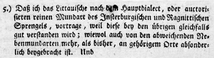 5. Supažindindamas su šalutinėmis tarmėmis, jis siekė palengvinti į kunigo ir mokytojo pareigas paskiriamų asmenų integraciją naujoje kalbinėje aplinkoje. Tai buvo aktualu sakytinei kalbos atmainai.
