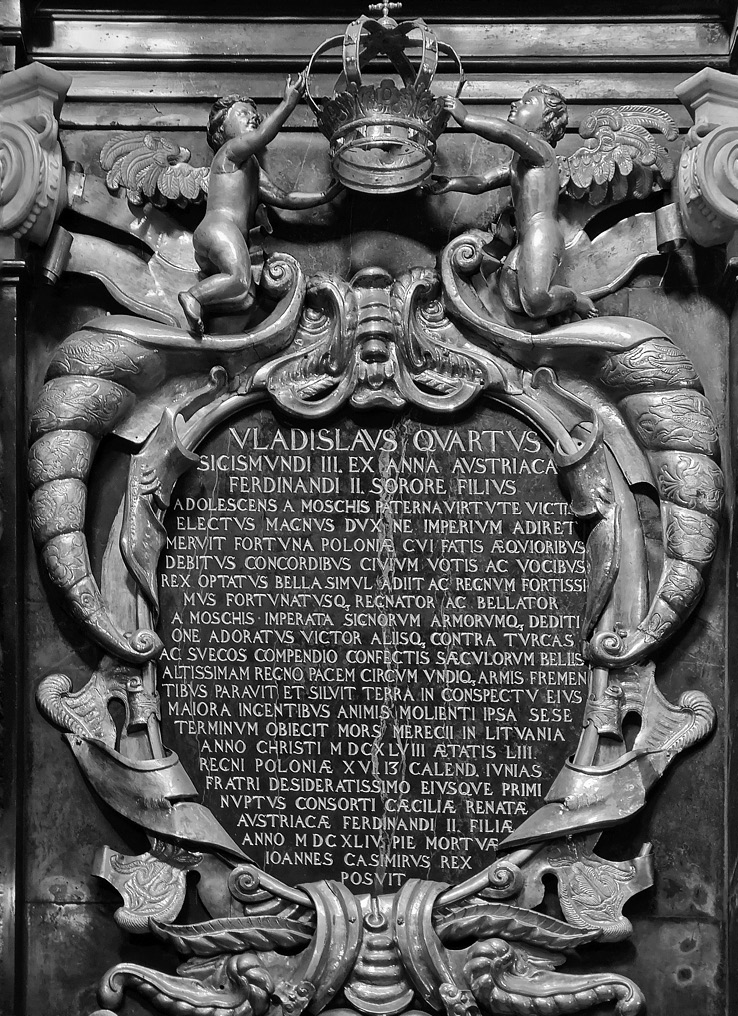 Širdis ir viduriai Vladislovo IV, Lenkijos ir Švedijos karaliaus, mirusio Merkinėje, Lietuvoje, 1648 metų gegužės 20 dieną, tų pačių metų birželio 26 dieną buvo palaidoti po šia karališkąja Šv. Kazimiero koplyčia, jo paties rūpesčiu užbaigta ir [šventajam Kazimierui] paskirta.2