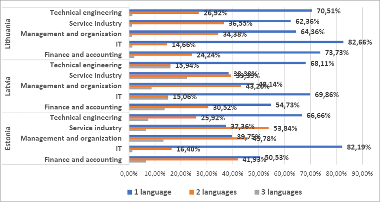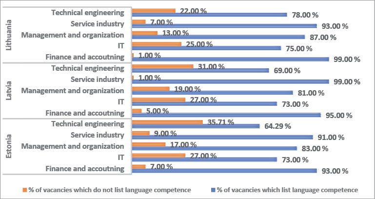 It is worth to note that a demand for local language knowledge is relatively high in each of the examined Baltic countries. It implies that foreign investors search for an employee who is able to communicate effectively not only in English but also in local language.