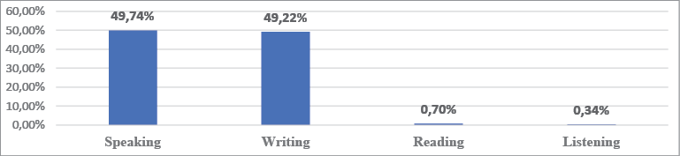 The following section overviews the demanded specified language skills across the investigated industries. Note that only job postings (N=1217), which listed the requirement for foreign language knowledge, participated in this stage of the study (see table 2). Most of the job postings (N=1217), which listed the requirement for language knowledge, specified the skills demanded for the vacancy (N=1158).