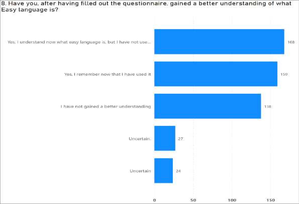 8. Have you, after having filled out the questionnaire, gained a better understanding of what Easy language is?