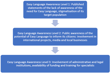Leskelä (2021: 180) also stresses the role of general awareness of the need for Easy Language as a result of participation in international projects across Europe: