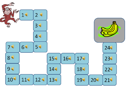 Garso įrašas6 (garsinis stimulas) vaikams pateiktas žaidimo forma Ms PowertPoint programa (žr. 1 paveikslą). Pirmiausia tyrėjas supažindino vaiką su pagrindiniu žaidimo veikėju – beždžionėle, kuri, norėdama gauti bananų, turi atlikti užduotis. Vaikui pasiūlyta padėti beždžionėlei įveikti užduotis. Kiekviename žingsnyje vaikas išgirdo įrašytą išgalvotą žodį, kurį turėjo pakartoti. Visas pokalbis įrašytas diktofonu – taip netikslūs atsakymai nėra fiksuojami vaiko akivaizdoje. Vaikams ši užduotis patiko, nes yra žaisminga, linksma ir trumpa (trunka tik 3–4 min.). Suaugusiems pateiktas tas pats garso įrašas per Ms PowertPoint programą kaip ir vaikams, siekiant vienodų sąlygų. Suaugusiesiems paaiškinta, kad vaizdinė priemonė pritaikyta vaikams, tačiau, laikantis vienodų tyrimo sąlygų, jiems ji taip pat bus rodoma.