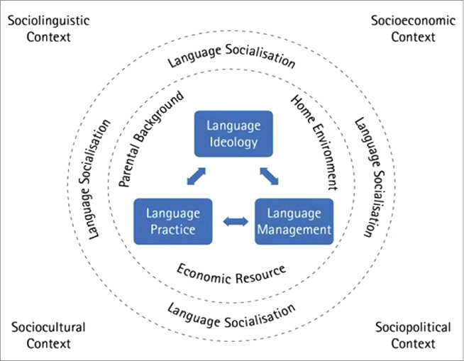 This model outlines very broad contours of FLP and has been modified by various scholars. It is essential that the three components do not exist separately from the larger society, and even if the policy in a given family may be unusual in a particular community, the wider sociolinguistic context is reflected in one or another way in FLP. Thus, Curdt-Christiansen and Huang (2020: 176) talk about external and internal factors; also, Schwartz (2020: 196) refers to internal and external control particularly in language management.