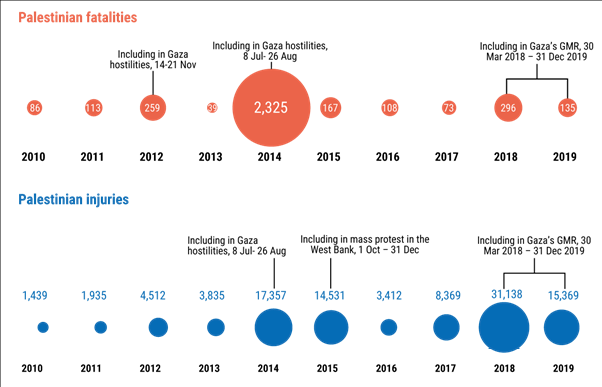 OCHA. (2020, February 12)‘ United Nations Office for the Coordination of Humanitarian Affairs - Occupied Palestinian Territory. https://www.ochaopt.org/content/casualties-thousands-killed-conflict-related-incidents#ftn2